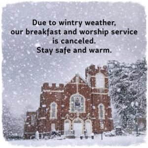 Once again due to wintry weather, our Sunday Community Breakfast and Worship service is canceled for February 1. Stay tuned for more information regarding any online opportunities for this Sunday morning at: https://www.facebook.com/CommaChurch